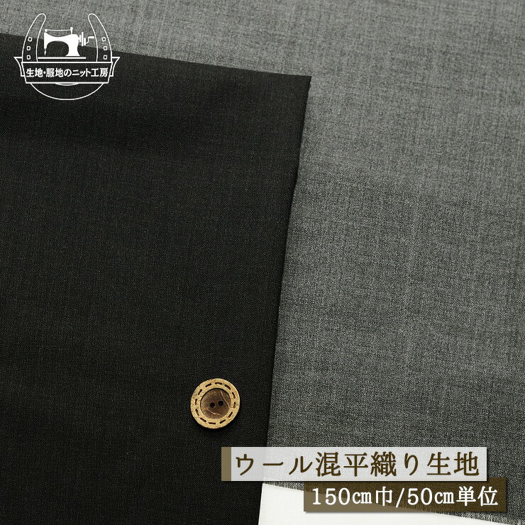 【無地/全2色】ウール混 平織り生地 広幅150cm 透け感やや有 薄手 少しサラリとした手触り 落ち感若干あり 布帛【50cm単位 メール便3ヶまで】(bb-341)